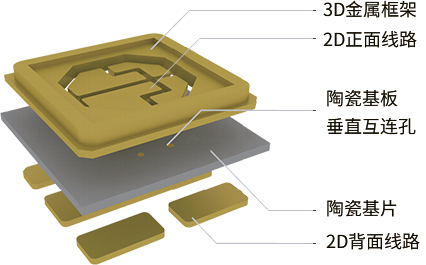 薄膜電路陶瓷封裝基板是一種通過磁控濺射薄膜金屬化與電鍍制程的技術:即根據應用需要,在高導熱的陶瓷基體上,采用薄膜金屬化及影像轉移方式制作2D金屬線路,然后采用TCV(Through Ceramic Via) 技術形成雙面布線間的垂直互連,最后采用堆疊技術獲得與陶瓷基體結合緊密的一體式3D金屬框架。基于薄膜電路工藝,通過磁控濺射實現陶瓷表面金屬化,通過電鍍實現銅層和金成的厚度大于10微米以上即DPC(DirectPlateCopper-直接鍍銅基板)。